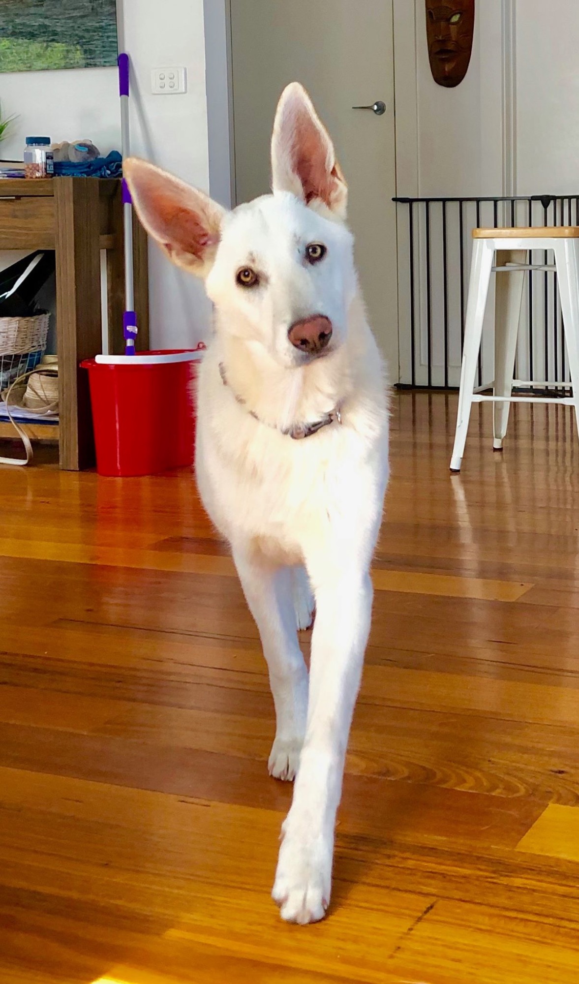 Beautiful Luna Rae is a white shepherd. She is only 9 months old, and full of puppy energy. But she is so full of love and absolutely loves her human companions. She is absolutely beautiful and makes heads turn. But there are things that you must consider if you are wanting to apply for her adoption.