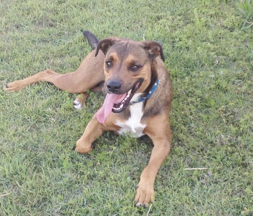 Introducing Miles, a 1 year old medium/large desexed mixed breed male. Best guess Staffie/Kelpie.