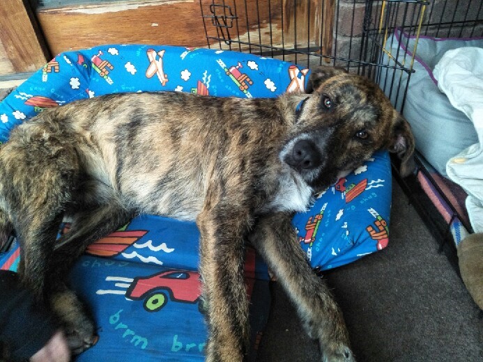He was found wandering the streets and was very underweight. He has regained his lovely coat and weight now and loves his food.