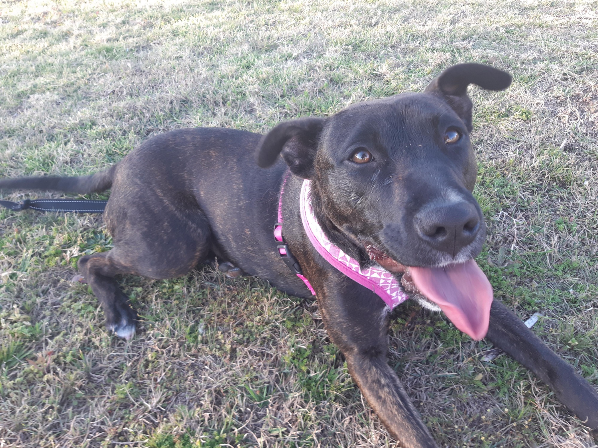 Jasmine ~ 9 month old Staffy x. She is a medium sized ball of affection and her favourite thing to do is cuddle everyone she meets! Jasmine sits when asked, is almost completely toilet trained and walks well on a leash.