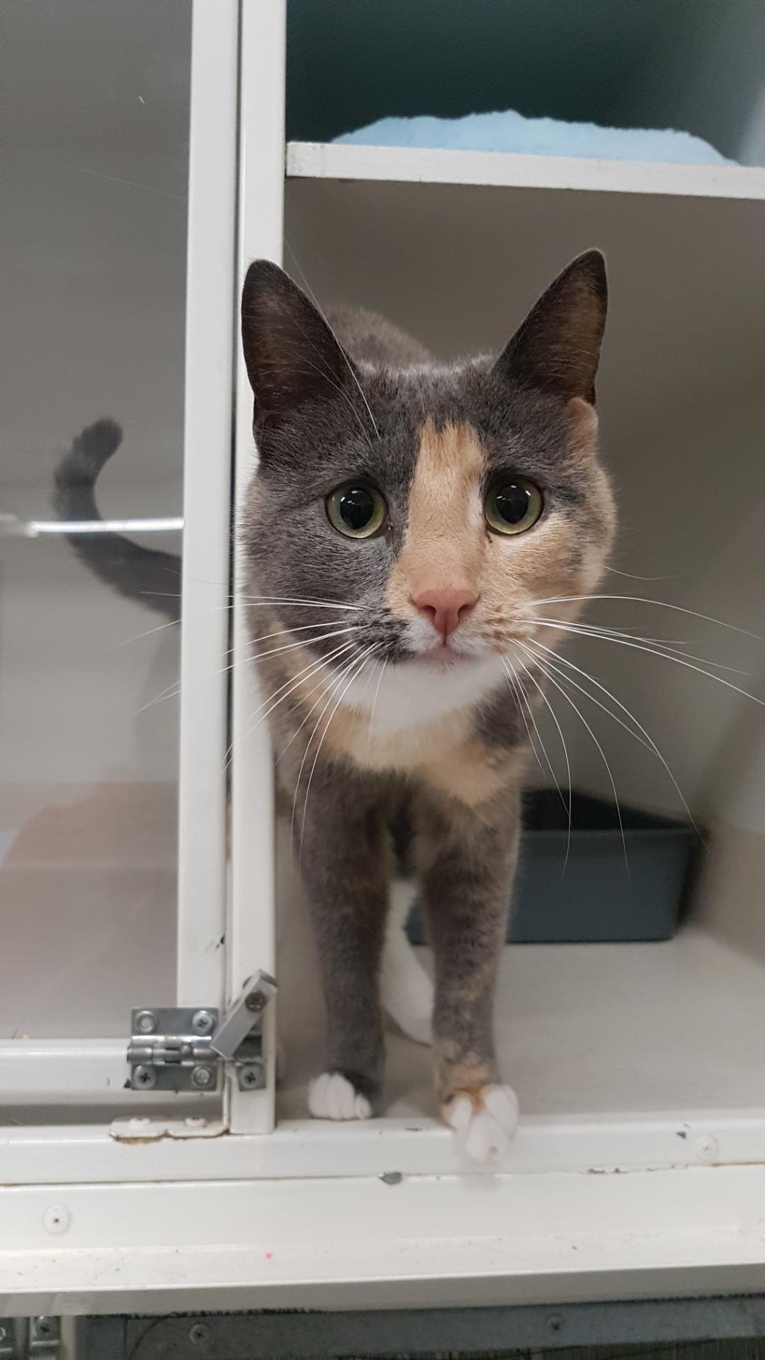 Zero is a very attractive calico girl who loves to be around people. She likes being involved in whatever is happening and is into everything she can find to explore.