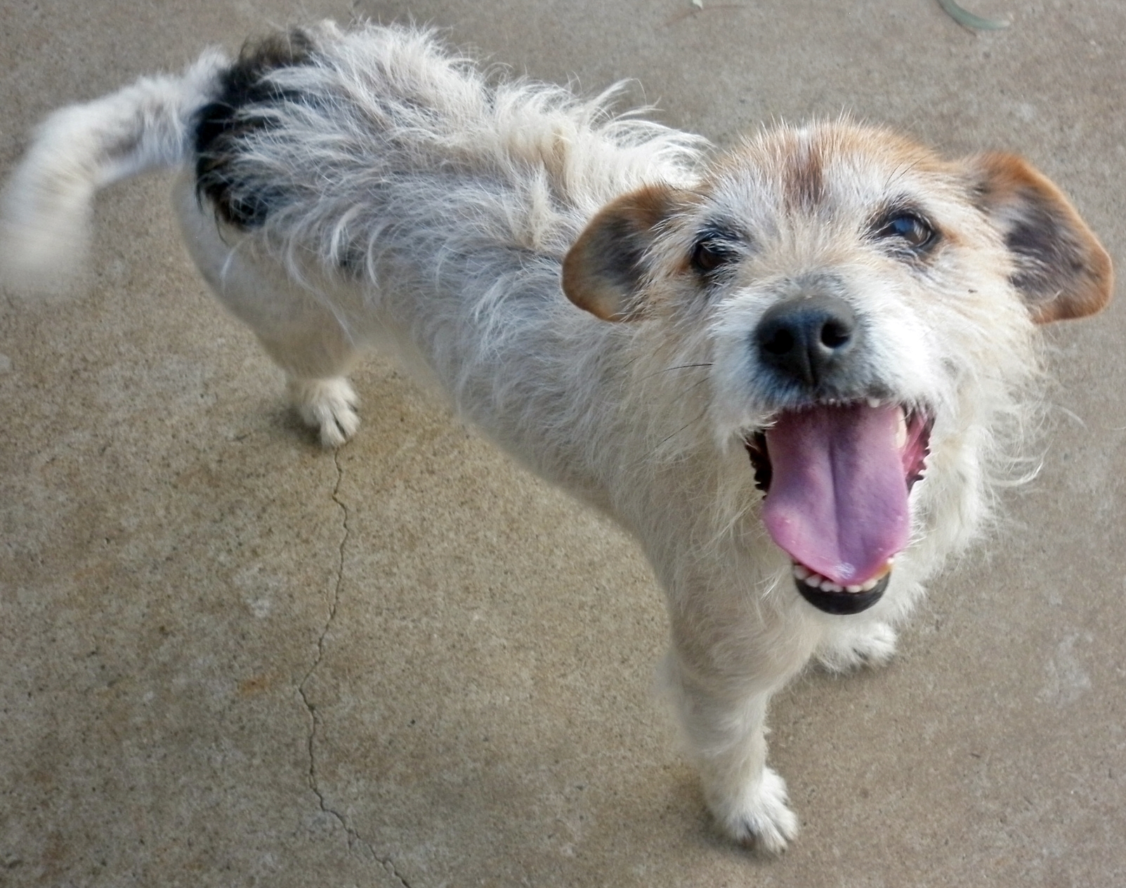 He had a bath to freshen up his coat and a nice walk on the lead. He sits and drops politely for a treat and has a teethy grin.