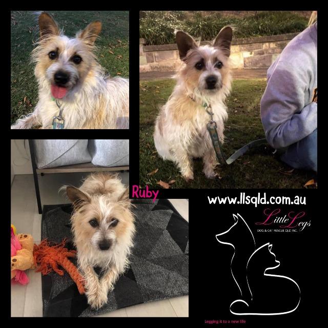 Ruby came into Little Legs' care after her owner's circumstances changed and they weren't able to keep up with her active lifestyle. She previously lived in a home with another small dog and children.