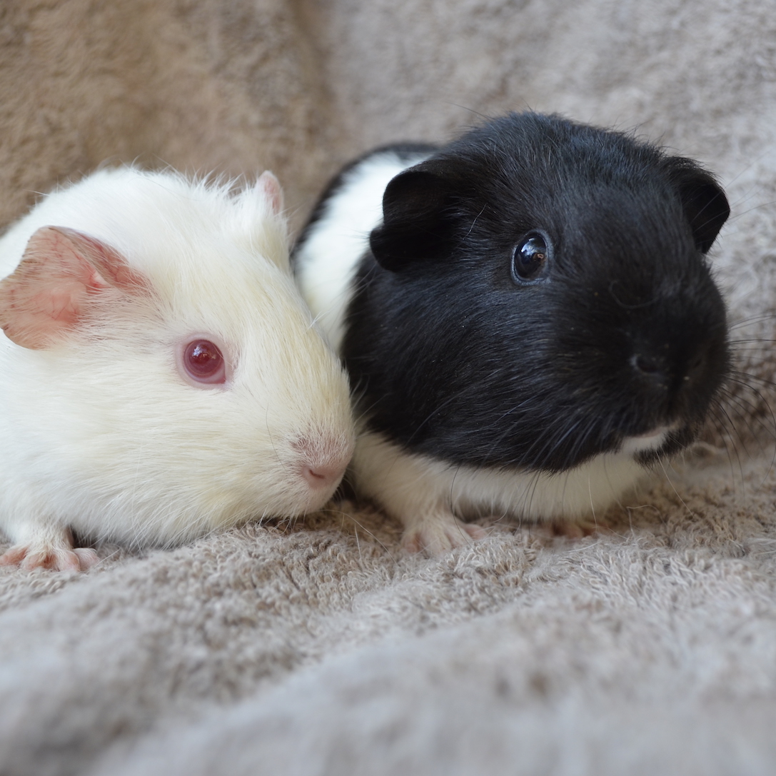 Kirsten and Peterina were only newborn babies, when they were dumped overnight, into a cage with a dog, at the pound. Luckily the dog was lovely, but soon after, these babies lost their mum. Amongst the guinea pigs that were dumped, was another guinea pig who had lost her babies, and so Elizabeth was introduced to these two girls. Elizabeth didn't have a lot of milk and was quite malnourished, but she did her best, and it was enough that Peterina and Kirsten survived. These girls have had a rough start, but they've been in rescue for a while, and although still small for their age, they're now ready to find a loving home.