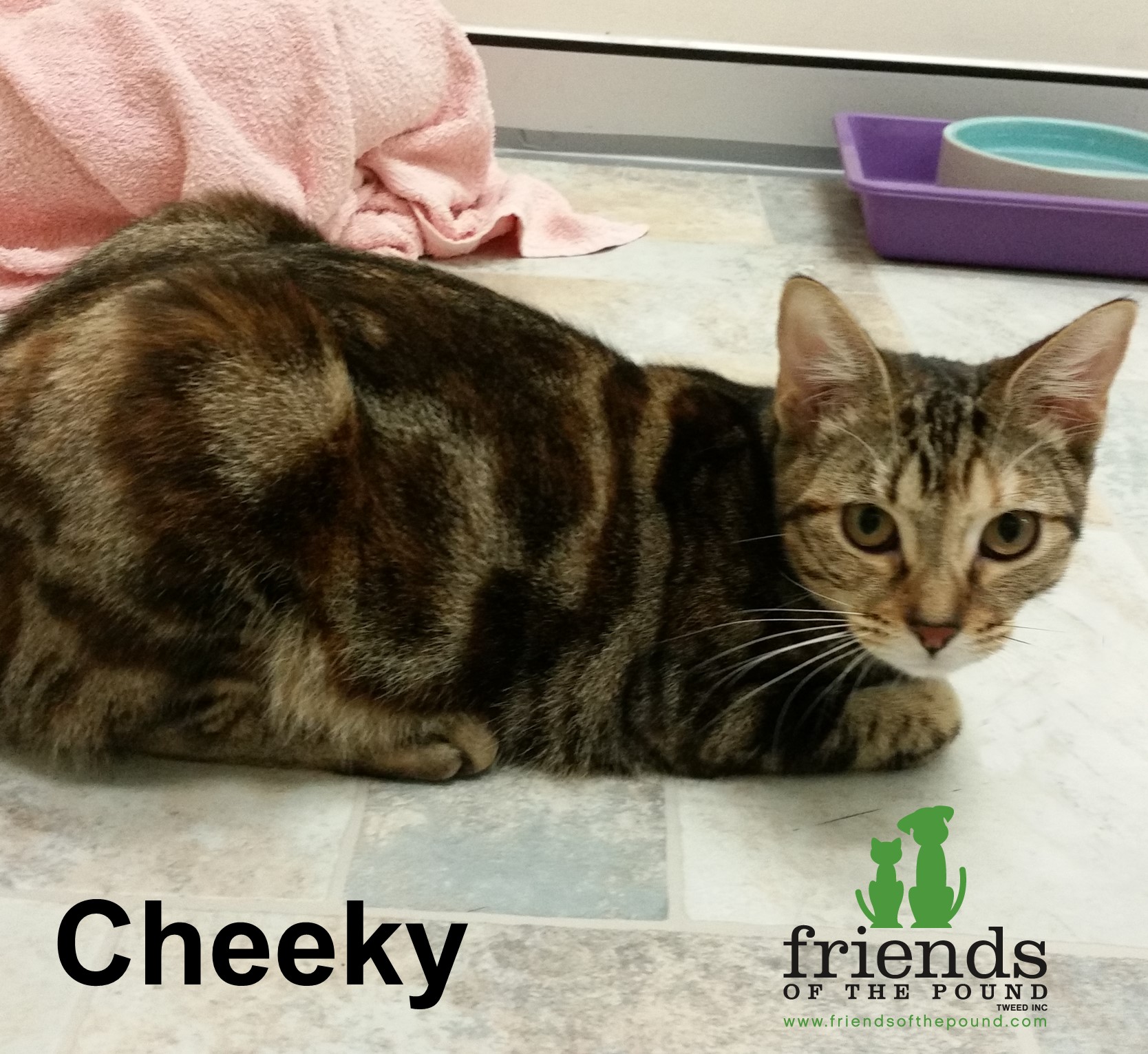 CHEEKY is a lovely, friendly girl. She would be best in an adult only, quiet home and will need a little time to a adjust to new surroundings.