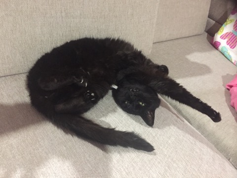 Hi Im Loca. I am a very chilled and friendly girl who loves her food. Actually food and sleeping are my hobbies. My foster mum has tried playing with strings with me but I get bored with that really easily. I mean as Garfield said there must be more to life than eating and sleeping but i hope not! I like hanging around people.. but im not a lap cat. I might let you pat me if I am in the mood .. if Im not I will let you know. I can get a little grumpy sometimes.. not very often though but hey , when your foster mum dresses you up and then takes your photo so everyone can see you... well purrrleease thats enough to make any girl just a tinsy bit angry! I can live with other cats if I think they are good enough for my company and attention. I dont think i have been around dogs.. so cant really say how I would react to them. I am an indoor only cat. I would be ok with children as long as they are respectful of me and dont dress me up! So if you would like to meet me send us a message and my secretaries will get back to you with a form so I can learn about you. Actually if you have good food and a comfy place for me to sleep I will love you. Hope to meet you soon!