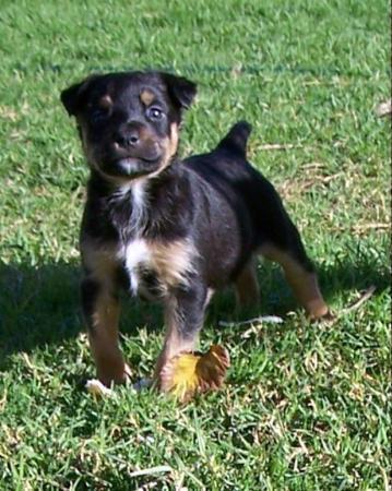 Alfred is a soft natured smart and playful puppy. He is social with other dgos and has met the local cats much to their disgust! alfred is very people social and has been with children as well. He is compliant in his nature and wants to learn and please. He is already learning to sit for a scratch and whilst he is loved great care has been taken to not spoil him. He sleeps with his siblings in and enclosed verandah in a lovely warm kennel. Alfred is learning to toilet train, but this takes time and he tries very hard. Just at night he will not go out as he is a bit scared of the dark unless you are with him, this is typical puppy behaviour. This will change quickly though. Alfred will suit as a second pet but if he is to be an only pet he would do best sleeping indoors near his people family. Alfred should grow to a meduim to large sized dog but we cannot be totally sure. He is a lovely black and tan colour. Alfred will need a family that will take him out to socialize and to puppy school at the very least. He will be an obedient and well rounded family pet. He will need a well fenced secure sheltered yard to play in whilst unsupervised and allowed to be an integral part of his loving new family