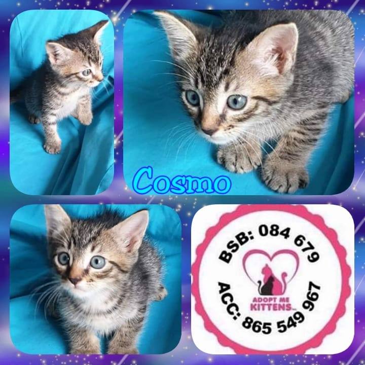 Cosmo is a super smooch. He comes for a cuddle and a smooch. Likes to sleep on the bed loves a game and will be a great company cat.