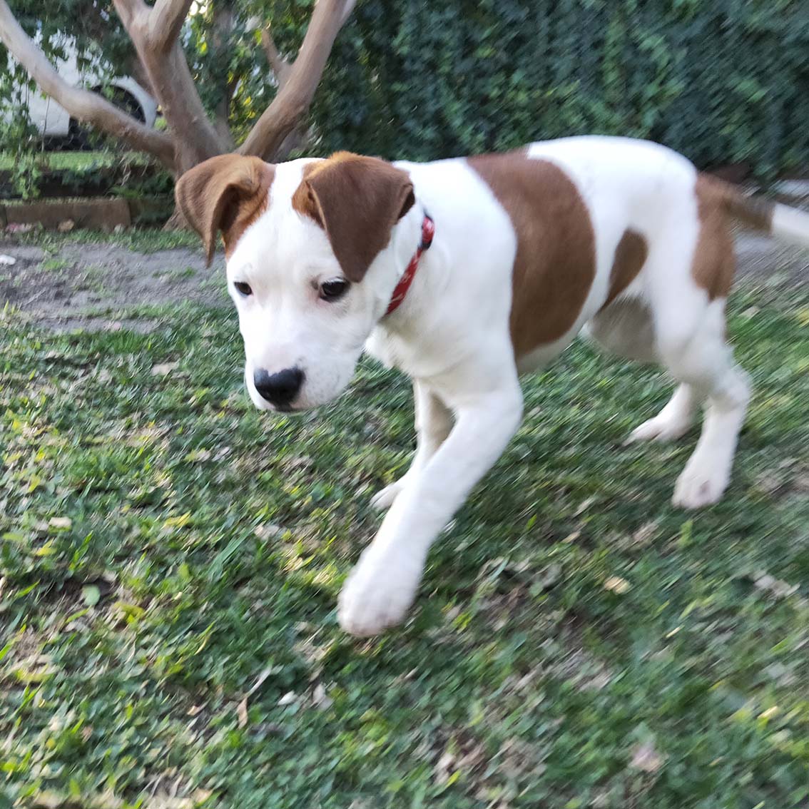 Dana will grow up to be a medium-size dog. She will need a friendly adult dog of her size or bigger as a teacher, companion and playmate as she would be too lonely on her own. It would also be good if someone in the household doesn't work full time.