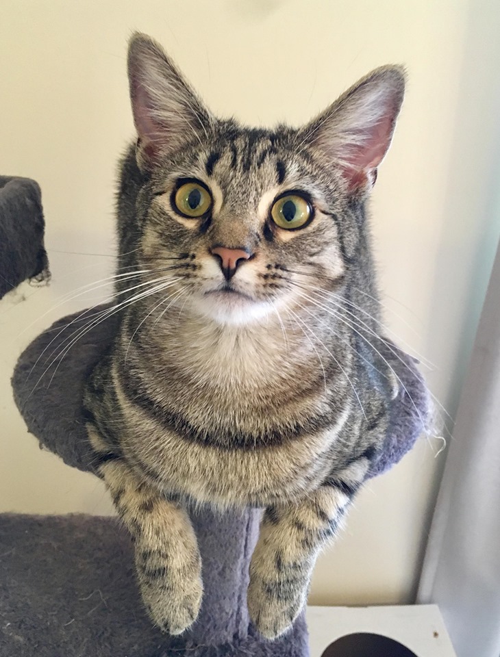 I'm a curious boy who loves to relax and curl up on the top of my cat tree. I really enjoy playing with toys, or with my feline siblings and curling up with you on the couch. I love humans, doggos, and children!! I'm suitable for any household.