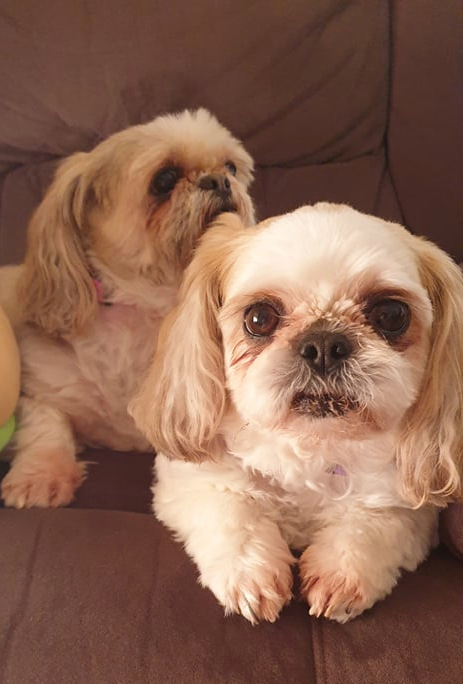 Lulu and Cookie are a bonded pair of adorable cuteness. Lulu is a Shih Tzu x and Cookie is a purebred Shih Tzu and both are 9 years old.