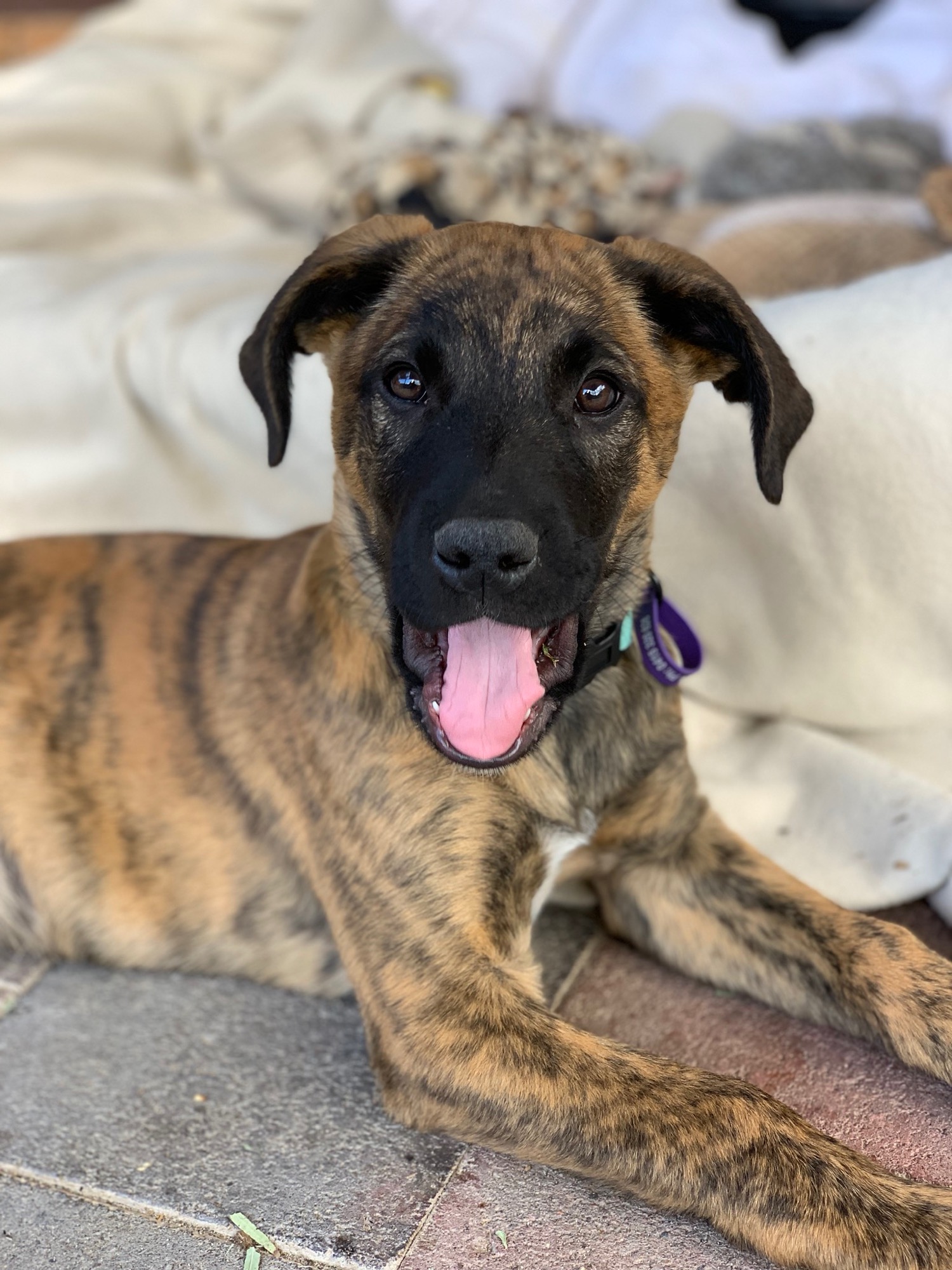 I am a Great Dane x Mastiff mix who is nearly 5 months old.
