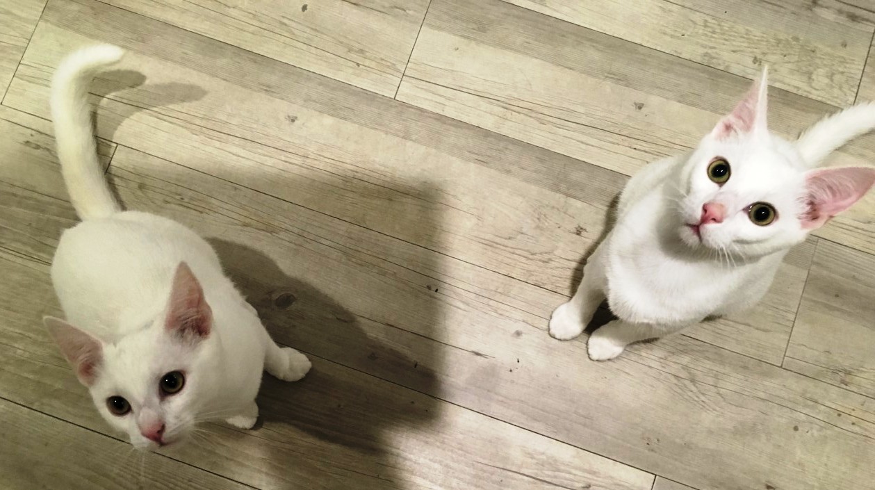 Ziggy and Casper are beautiful white twins with identical grey blazes on their heads. Very frightened when they first came into our care, it took some 2 weeks to allow us to pick them up, but both have now settled well into their foster home. They live happily with their resident humans, climbing onto an available lap for a purring cuddle, as well as the several other felines in the household.