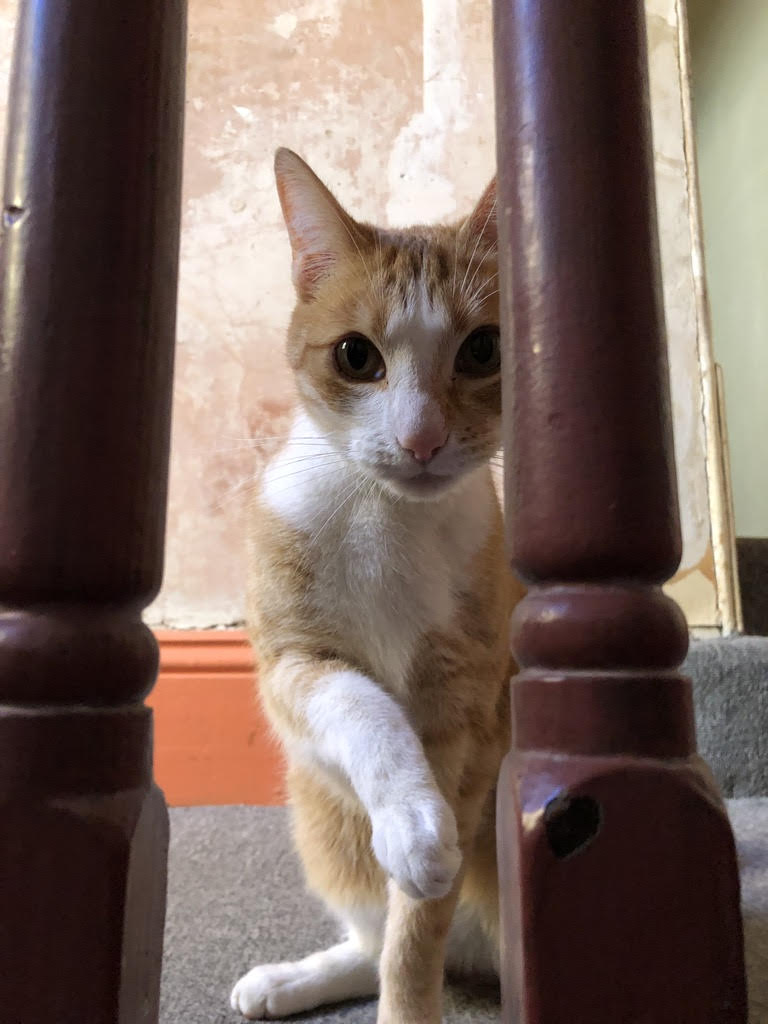 Aslan is a little quiet on approach, but once he knows you're a good sort he will be keeping an eye on you, always staying close & loves the idea of a playful pat or game of chasie about the house- he's a true explorer at heart!