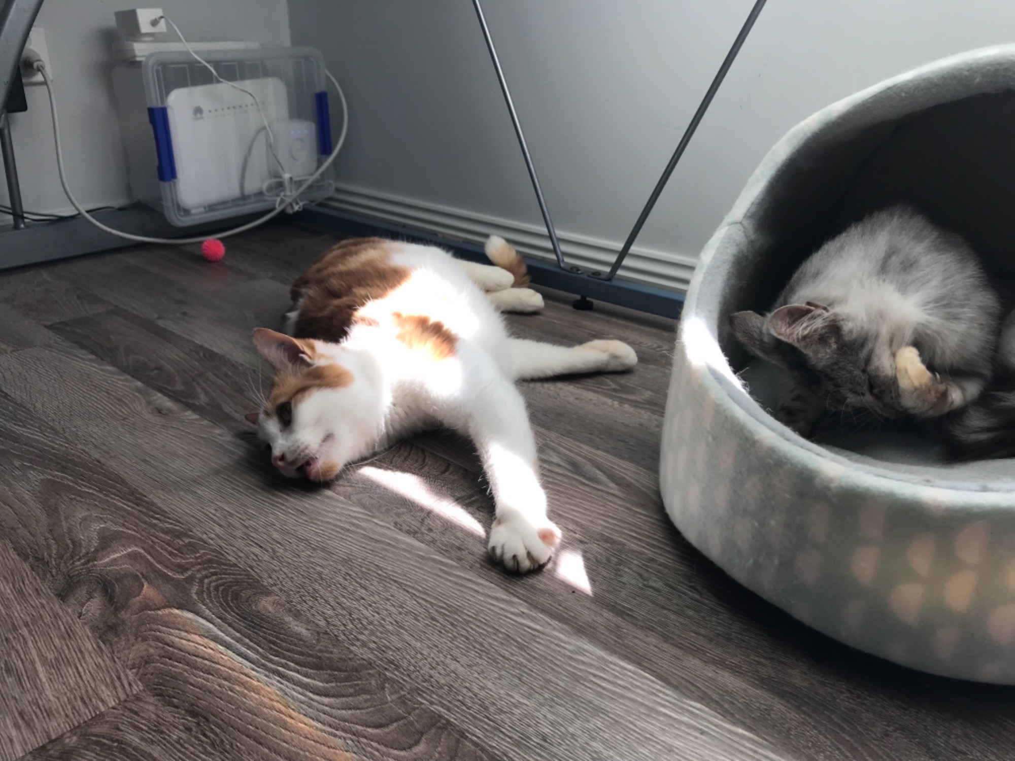 Ren is a more independent kitty who is the brains of the duo and usually takes a little longer to trust new people. Stimpy always has his tongue hanging out and is a little dopey and carefree, just wanting to explore and make friends while taking advantage of all the luxuries of his indoor foster home (you’ll find him moving from comfy bed to comfy bed, testing all the soft new materials!) they’re quite bonded brothers so I’d prefer them to find a home together ❤️