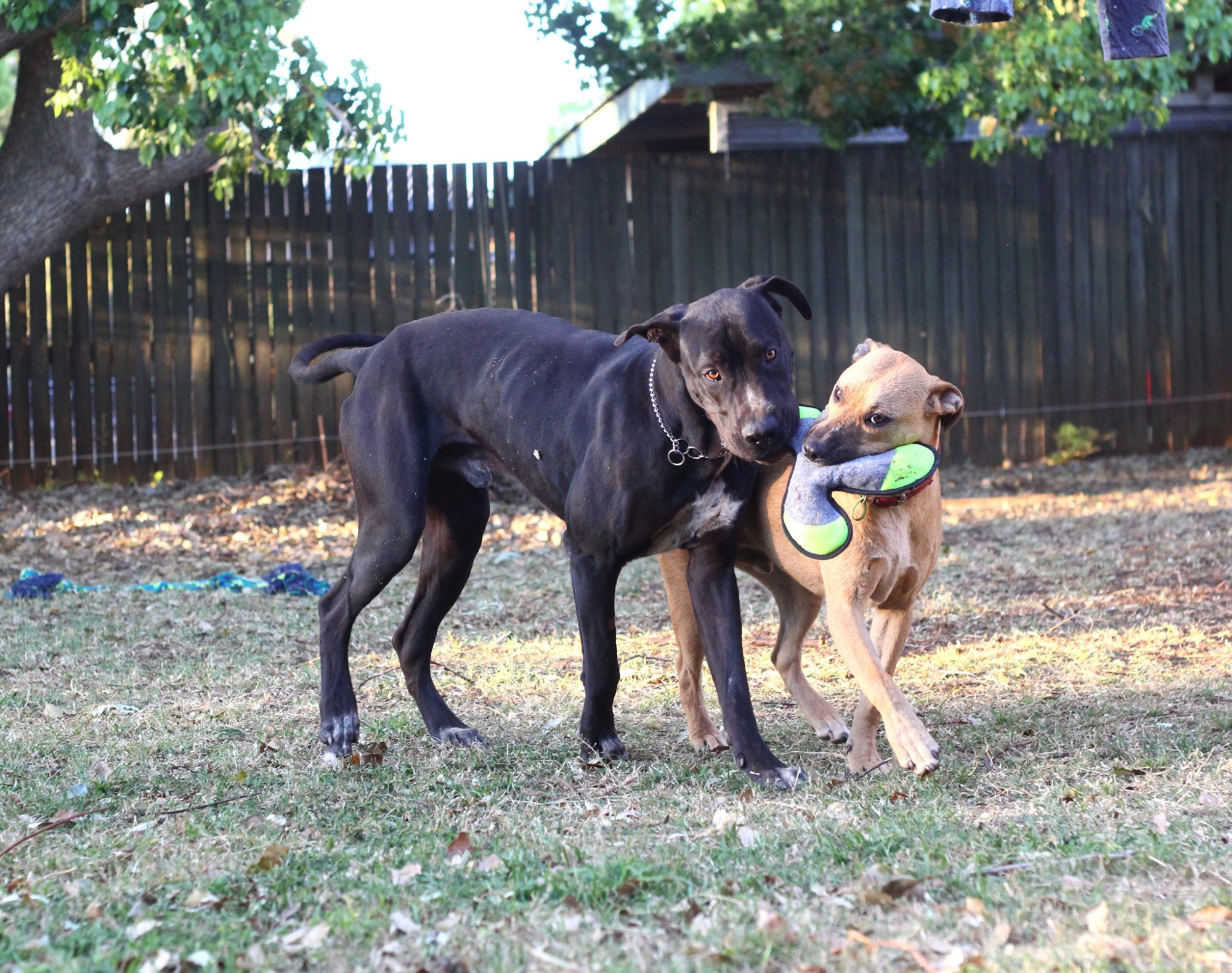 I am now almost at my ideal healthy weight. Maybe 2kg to go and I'll be there! I am a happy, energetic and gentle boy who loves the company of other dogs. I currently live behind 5ft fencing and sleep outside with the other dog, on the deck. I haven't yet met cats, so please don't try to make me live with any unless they are adequately contained and you have experience teaching dogs how to be around them. My manners are impeccable and I am so loving and eager to please! I adore going to the dog park, and sit nicely in the car. I like paying tug a war, and chasing balls. I am learning to walk well on lead, and don't bark often at all - usually only if there is someone at the gate.