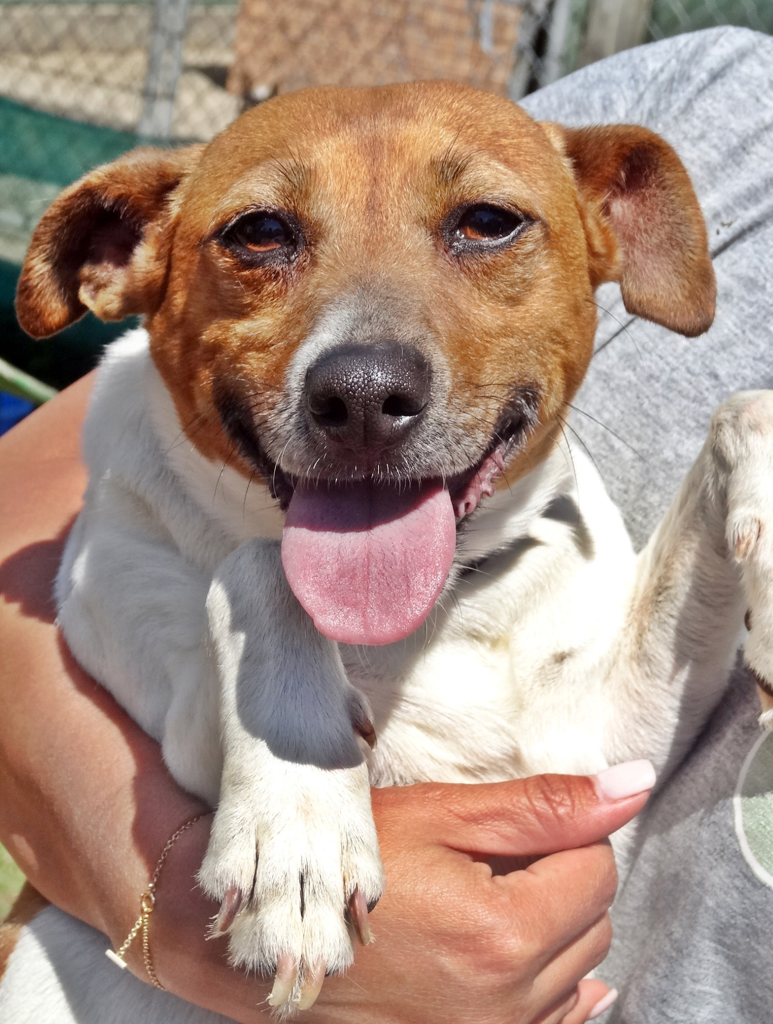 She is a happy and friendly dog, energetic, very busy and happy to meet new people.