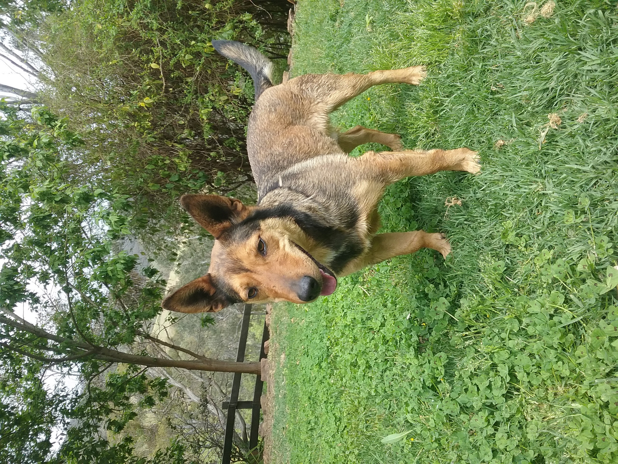 Milo looks like a german shepherd with mini legs but microchipped as a mini foxie x kelpie .