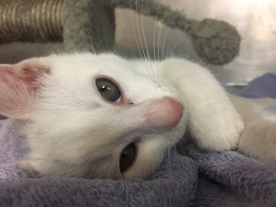 Snow is a pure white domestic short hair who is 100 miles an hour. Anything and everything and anything is a toy! When she does slow down, this little lady will lay on your lap and nap happily. Her purrs echo through the room like a motorbike engine. She is our longest standing kitty that needs a home. Snow has had no one interested! If you are willing to give Snow the opportunity to have a home then please contact us!