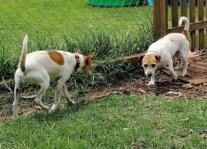 Both dogs are used to living outdoors but would quickly learn to be both inside and outside dogs.