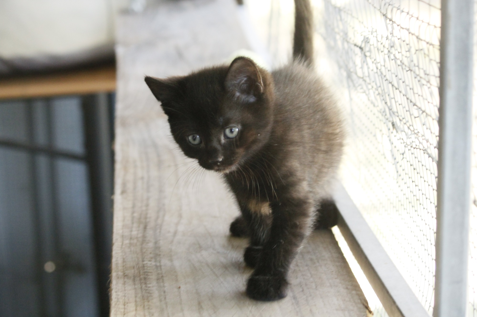 Digit is five weeks old, not yet available but we are starting to take applications. He was born in foster care 11th of Sept at 10.05 am. He's toilet trained eating wet food and about to start on dry food this week. He's medium haired black kitten who reminded me of a tiny gorilla hence the name. Dig is located in Wagga in foster care with his four brothers.