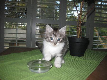 Toby is a beautiful,handsome 8 week old tabby & white kitten in a litter of 4. Lovingly raised in my home. Toby is so very friendly and playful. Toby is very confident and loves human company. Can you offer this striking boy a loving home. This kitten is one of alice's babies also listed