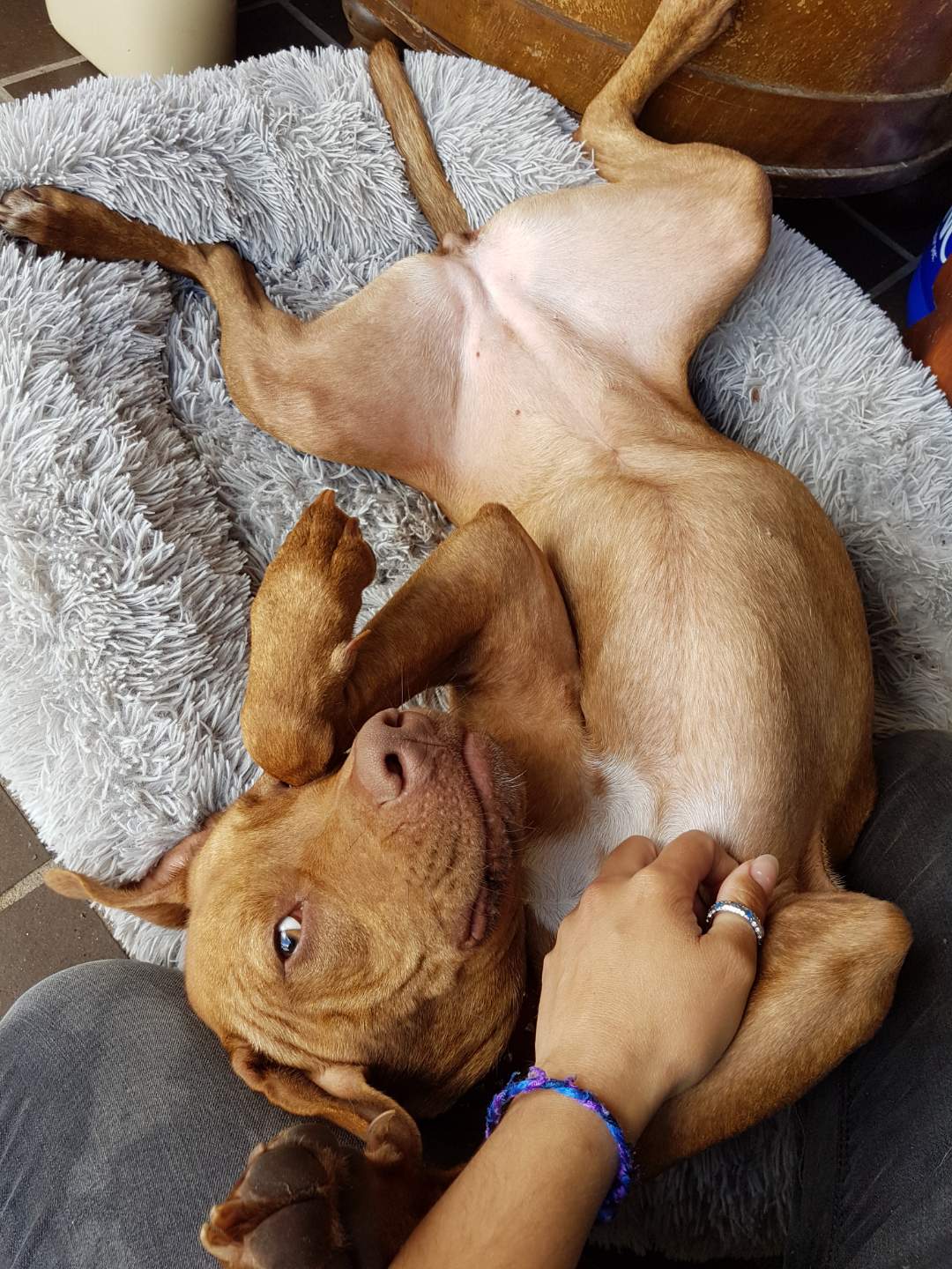 With a mixture of Ridgeback and Staffy, Ella is the whole package. She has the emotional sensitivity of the Ridgeback which means she is great with people and kids and has the boisterousness of the Staffy, this is why she runs around with a toy in her mouth singing to you!