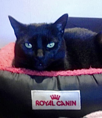Peppe is a lovely girl with her shiny black coat and emerald green eyes. She has been used to a quiet life and needs a home with no other pets and must have access to the outdoors. Her elderly owner passed away and she was left at the house with a window left open to come and go and was fed once a day. When she came to us she had lost some of her human bond, but has regained her trust in humans and adores her fosterer!