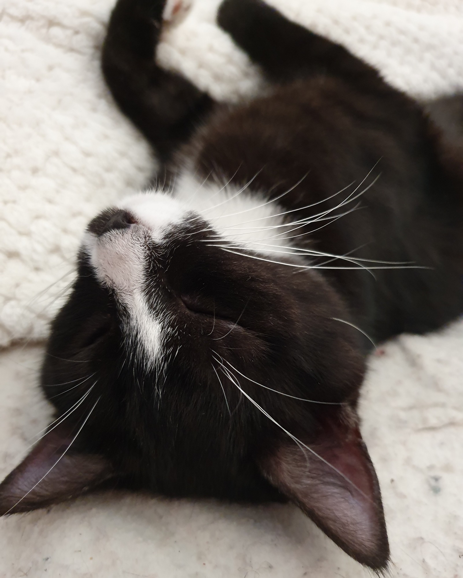 Freddy has an unusual coat in that he has mildly discernable stripes but looks black and white predominantly. We think he's a complete cutey. His photos don't do him justice.