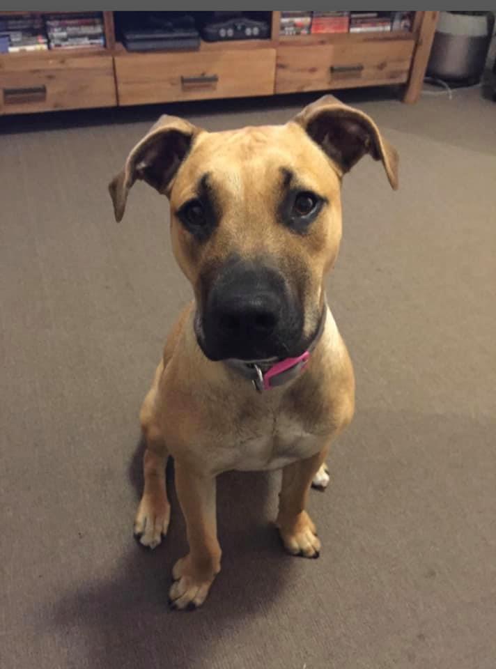 Zena is an absolutely adorable mastiff x pup who loves nothing more than to play. She’s currently living with two older dogs and enjoys the company and playmates so much, we’d just love to see her in a home with another playful male pal to keep her company. A princess does need her prince after all. Since she is just a pup, Zena has boundless energy and so needs at least one walk a day. Some mental stimulation will help tire her out as well and give her the chance to show you how clever she is. She is also very much a water baby. Zena loves playing with water from the hose, the beach, the lake, the pool. Basically, anything wet and she’s there.