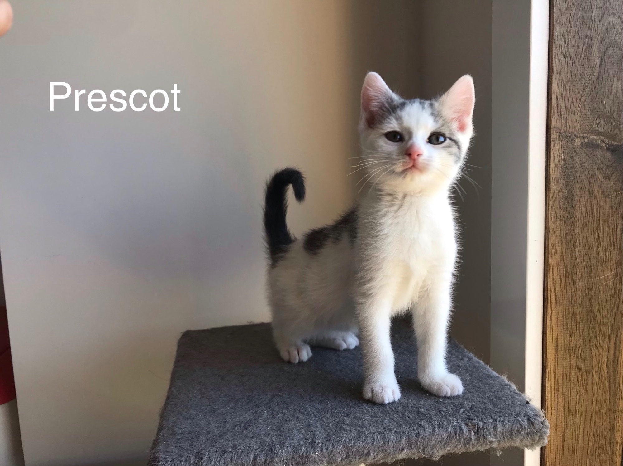 Prescot shares his home with a blue heeler but is a little unsure of him. He likes to follow the resident cats around and is happy to be in their company.