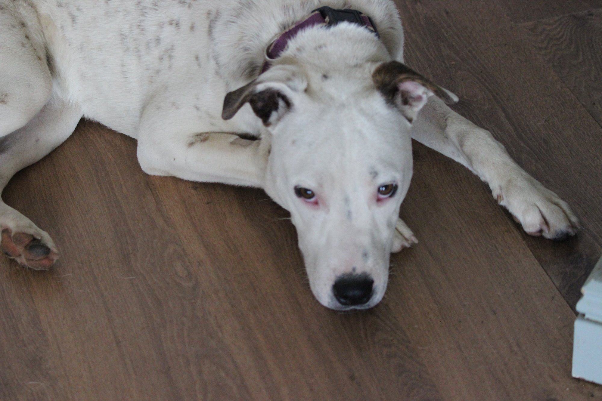 He was surrendered to the vets after he was unwell and his owners couldn't afford to pay so we took him on and he is just the sweetest save.