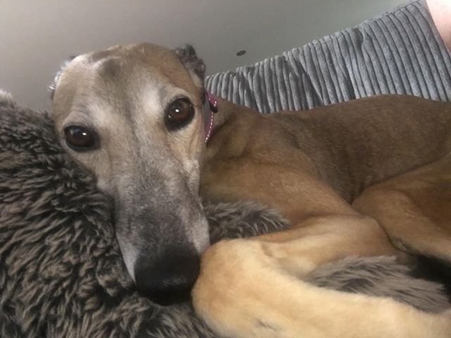 My best friend Kash who is also a greyhound made me feel at home and I love to lay my head on him. Then there were all these cats. To start with I didnt know what to make of them - Kash assured me I wasnt to chase them. But lately I just cant seem to stop myself and I especially like the teenagers cat who runs off.