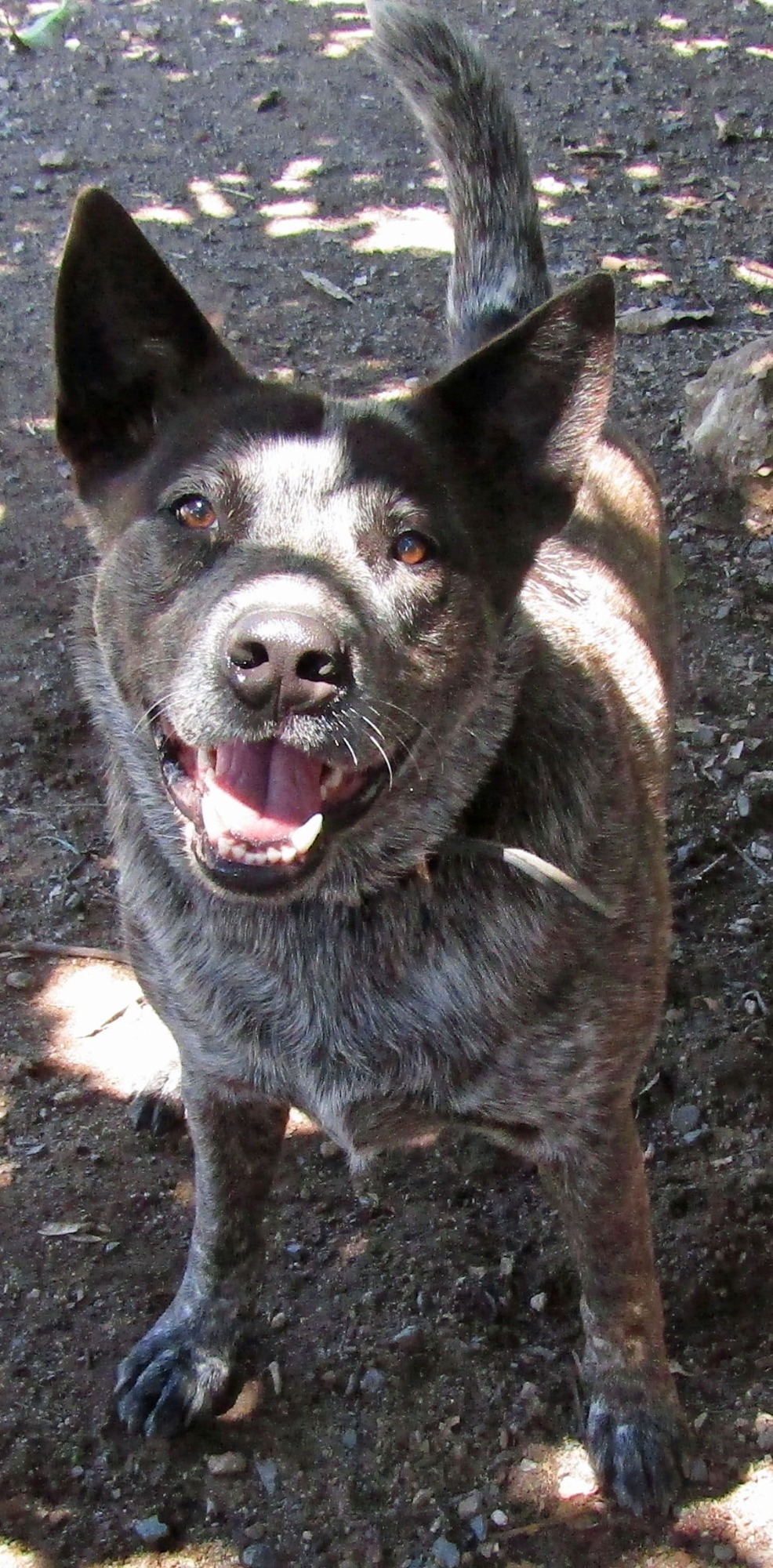 Blink is a special young man who came to us recently. A young slightly shy Australian Cattle Dog. He does not like men or strangers. He loves playing ball but is not obsessive about it. He would be great as a loyal companion and friend for a single female who needs someone to protect her and her property. He seems fine with all the dogs we have introduced him to so far. He is fine with humans outside his yard but is very protective of anyone coming into his yard. You can walk him in the street have him play in the park but at home he protects his owner and her property. He is a little cautious with humans until he gets to know you. He has been desexed microchipped and immunised. 953010002009360