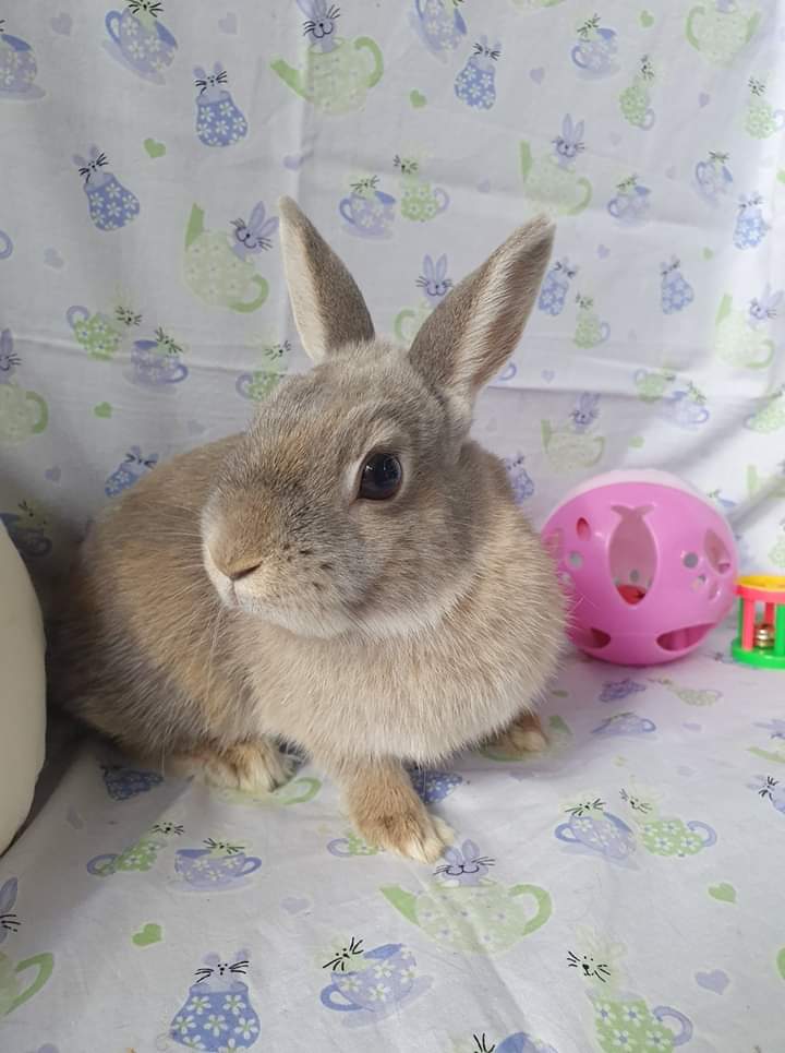 A tiny and timid bunny at 2.5 years old. She is shy and quiet and would like a lot of love. She is a small bunny so won’t take up too much space at home but be ready for her to take up a big space in your heart.
