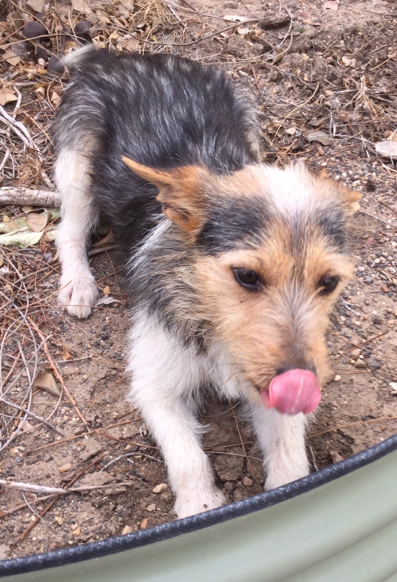 Scamp was picked up wandering in a village out of town. Nobody came forward to claim him, so he came into care with us.