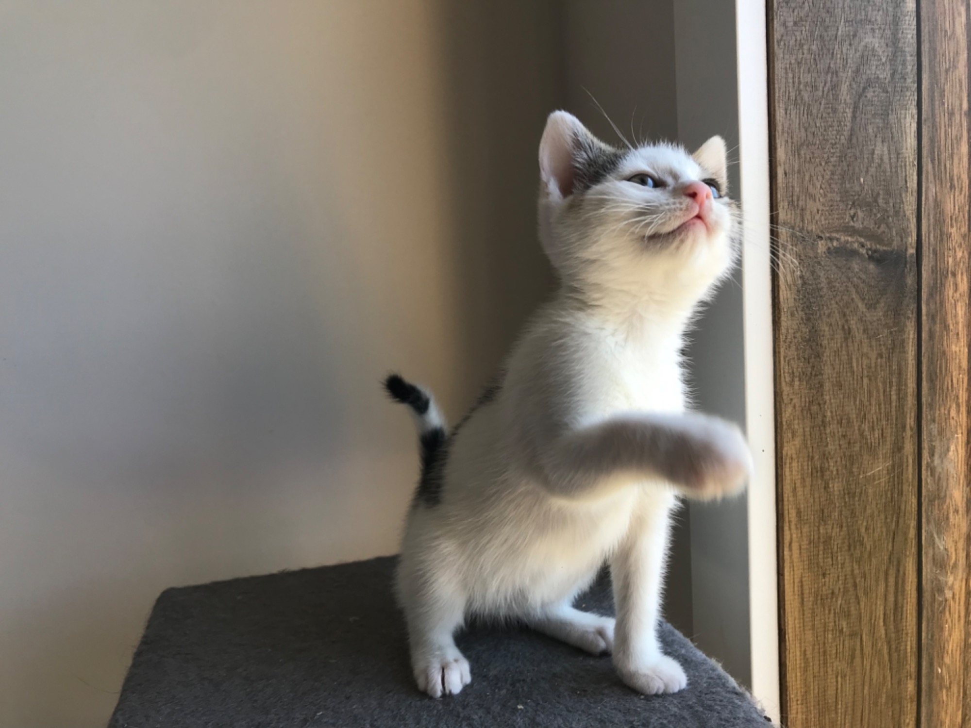 She finds the world interesting and loves exploring. Climbing up high in her cat tree and playing in cardboard boxes are her favourite things to do.