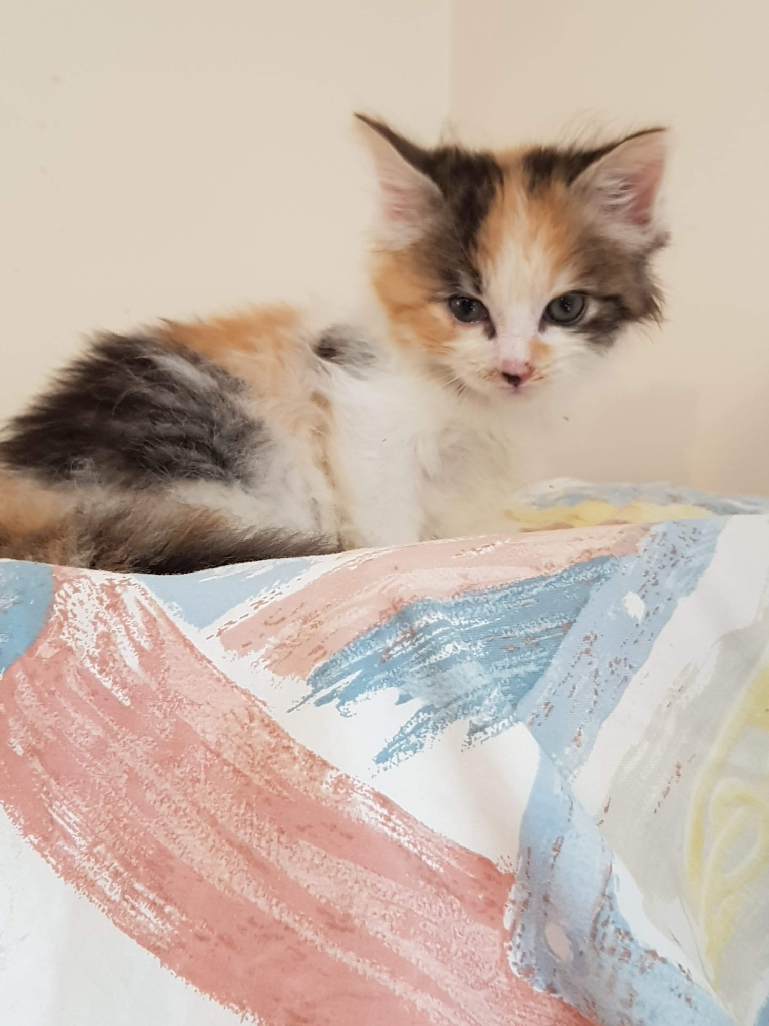 Amethyst is a bit quiet. She likes to play, but is just as happy curled up on the lap of a loved one. She is easy going, and gets along well with other cats, and my small dog.