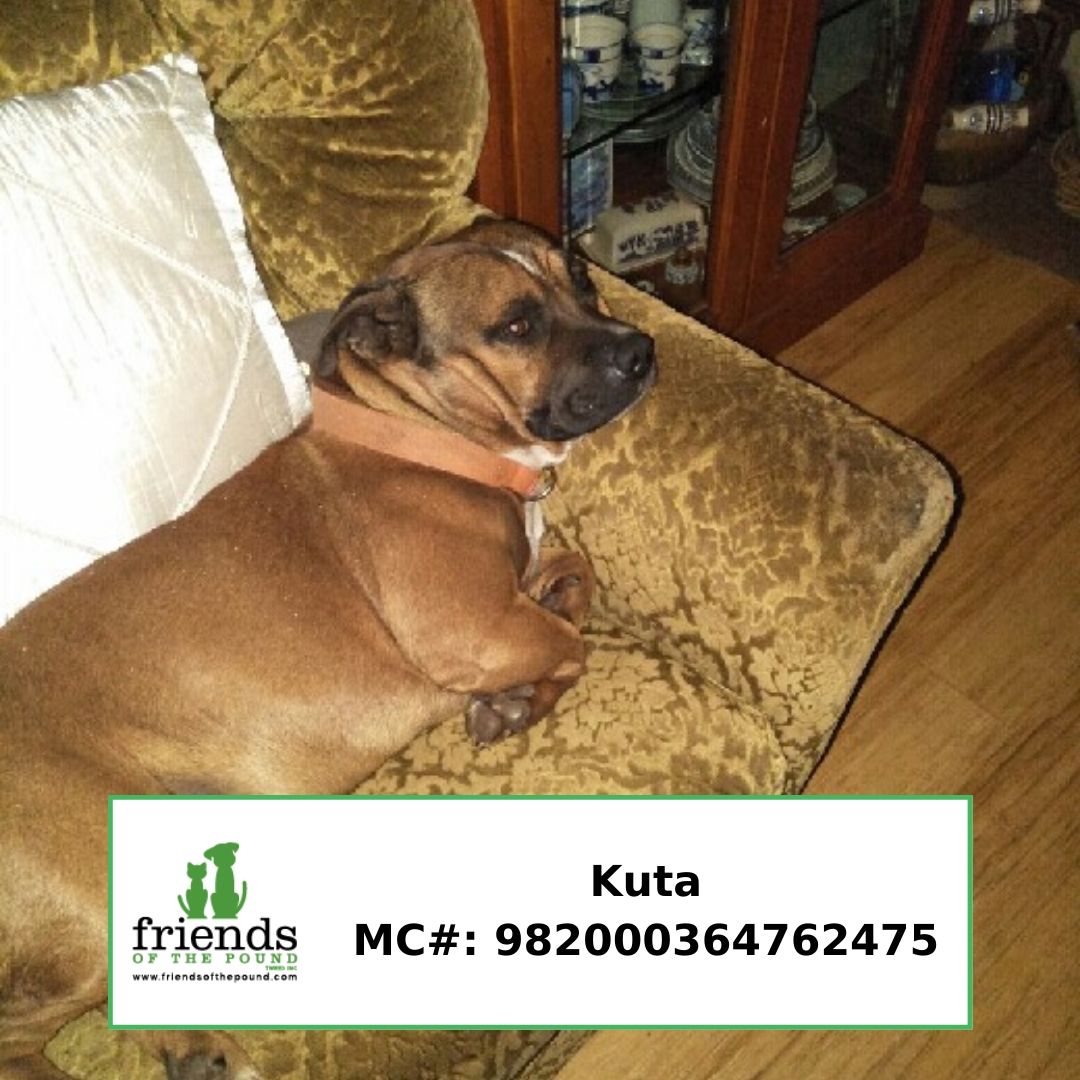 Kuta is a 5 year old desexed male purebred English Staffordshire Terrier. He is an active, affectionate boy who loves people. He gets on well with other dogs but is best as the only pet in the home as he wants all the attention.