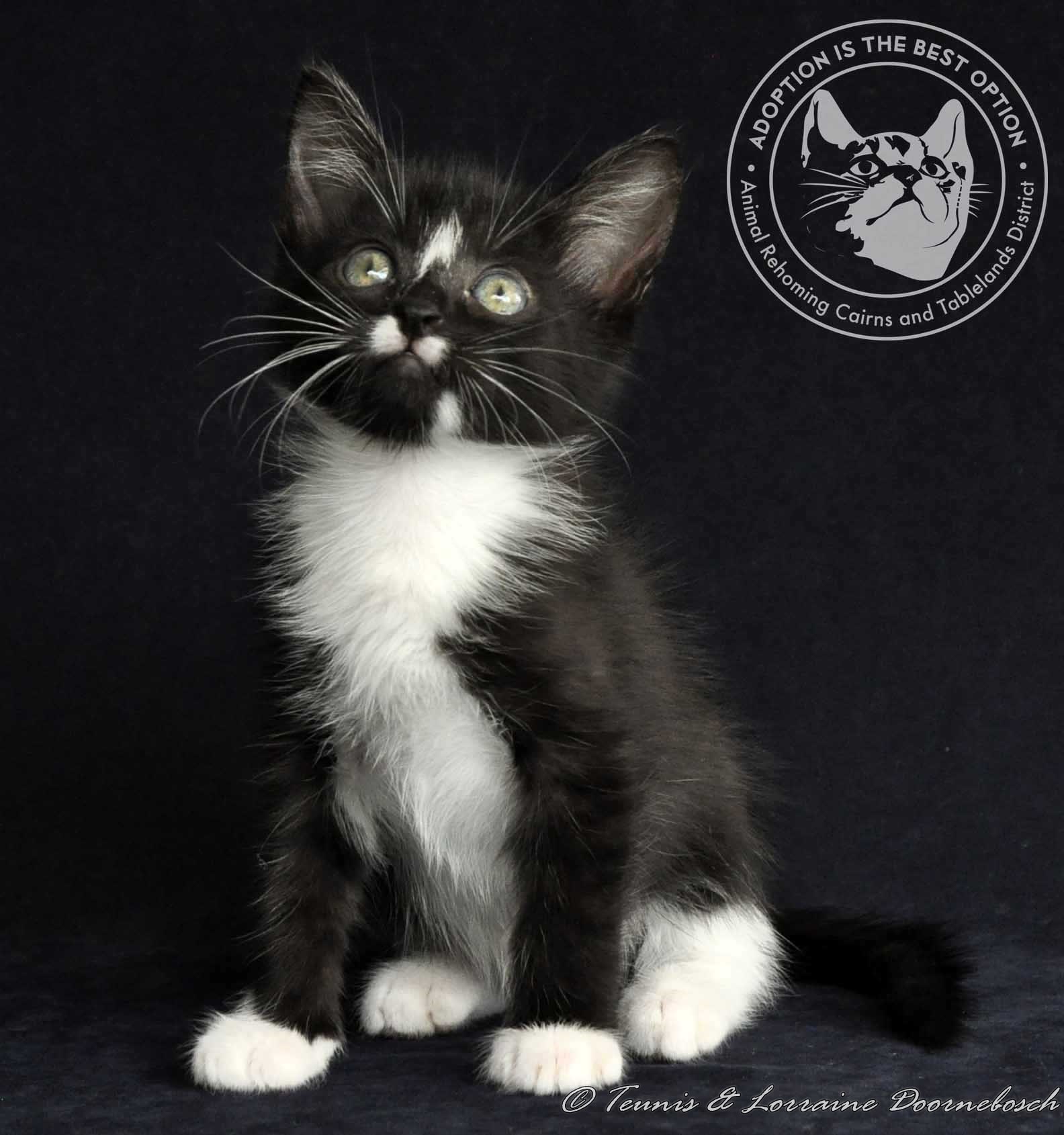 Napoleon was born 08.08.19. That little mustache is too cute for words. Is it a bow tie, is it a butterfly ? (Let's not mention the war) Napoleon is a playful little boy, the runt of the litter but by no means the smallest in character or bravery. Like all of his siblings, Napoleon starts purring as soon as you touch him and he loves cuddles, when he's tired that is. When he's playing, it's catch me if you can games he loves the most. This little man is full of the love of life and will keep you entertained for hours. All his vetwork is done which includes desexing, microchip, vaccination, flea and worm treatment. If you're interested in adopting this little tuxedo kitten, please click on this link to complete our application form https://form.jotform.co/91463029063858 Alternatively you can email arcatd@hotmail.com
