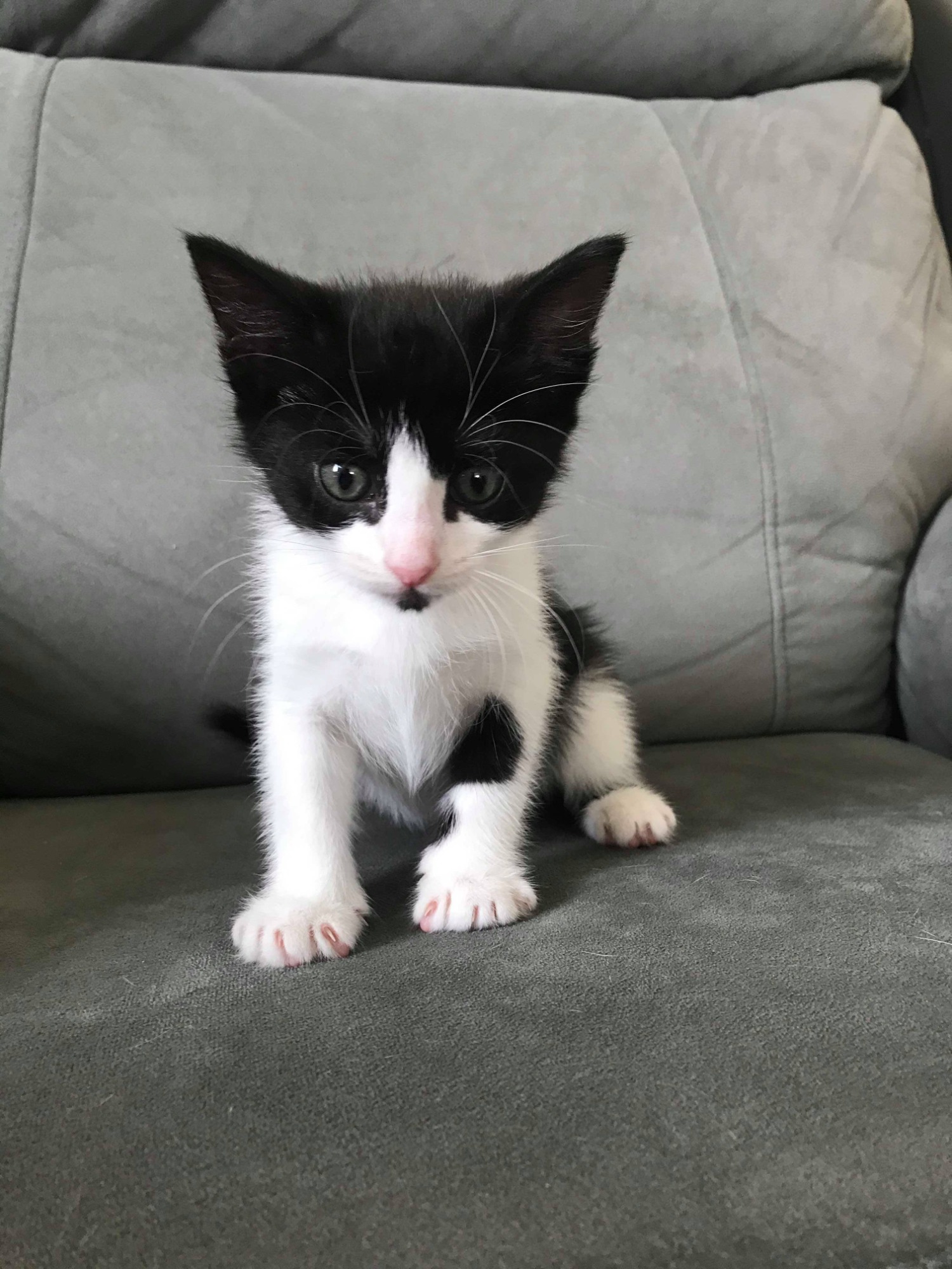 Pickle is an extremely sweet, outgoing, playful kitten who enjoys nothing more than snuggling up to his human friends and wrestling with his siblings. He likes to follow around his foster parents and making funny little squeaking noises at them until they pick him up for a cuddle. He is an extremely loud purrer and prefers to sleep on the lap of/with his foster parents than on his bed.