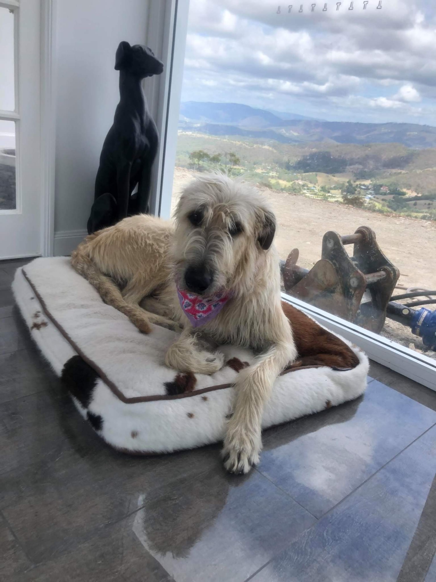 Is a beautiful Irish wolfhound who at 20 months is just under 50 kgs 😍