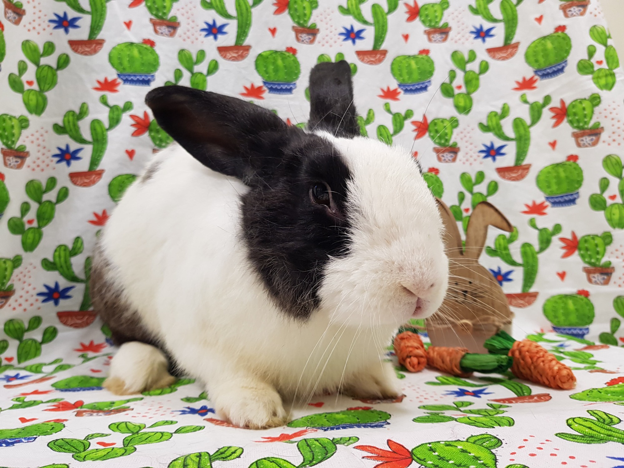 HIP-HOP HELLO! I am Sir Alfred Hoppington! I was recently surrendered to the orphanage, just like all my other bunny friends who are here waiting for a family to take them home to their FINAL furever home. I am a big lad who likes to laze about and oh how I love the treats I get here! If you have lots of napping spots and treats galore, I will gladly come live with you…if that’s ok?