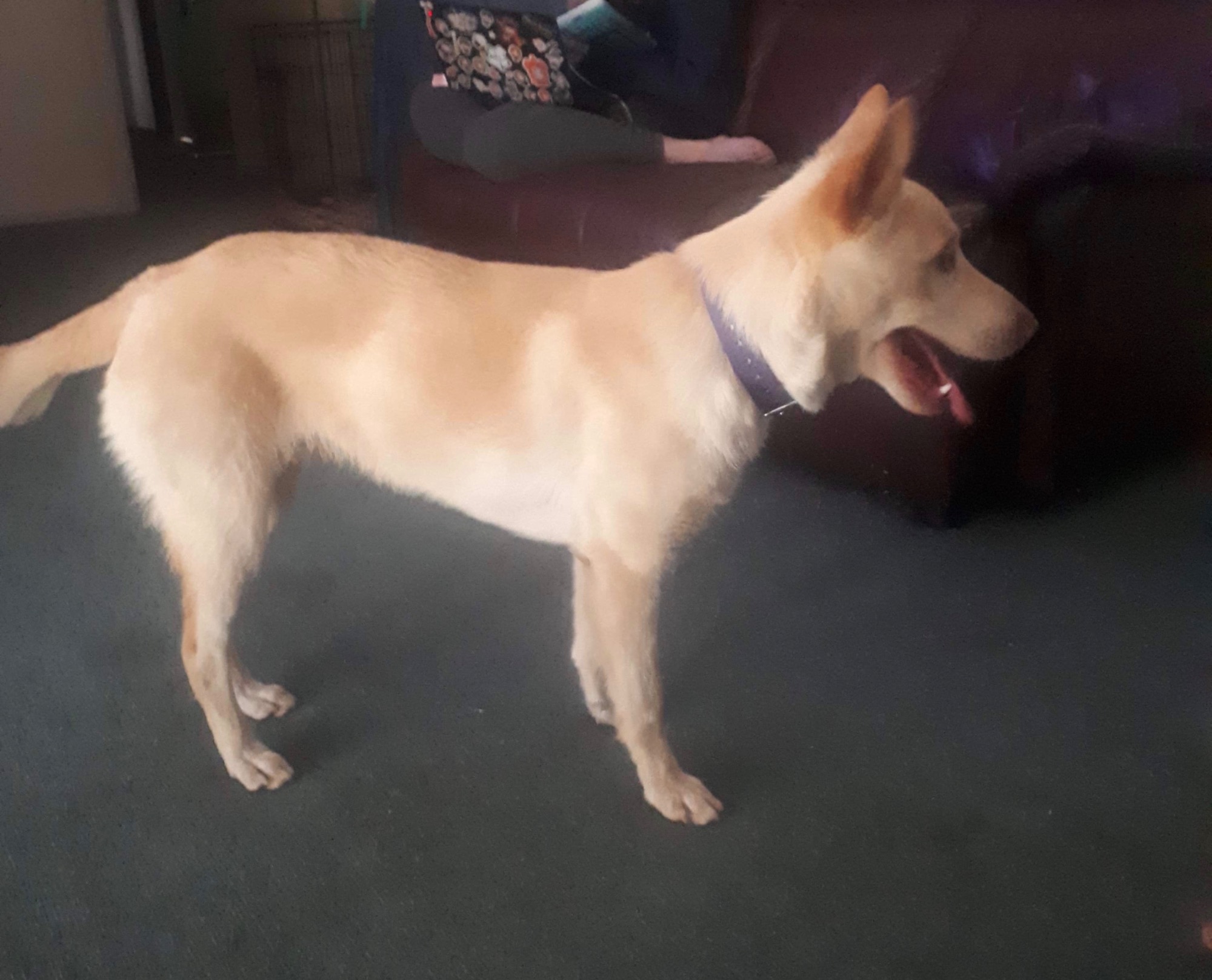 Marshall is a sweet and playful fella who loves to talk back to you. He is a smart boy and is responding well to simple commands. We would highly suggest further training with this boy as he’s still young and has the world at his paws. He’s good around kids and other dogs, not tested with cats yet tho. If you have the time for this fella please put an application in.
