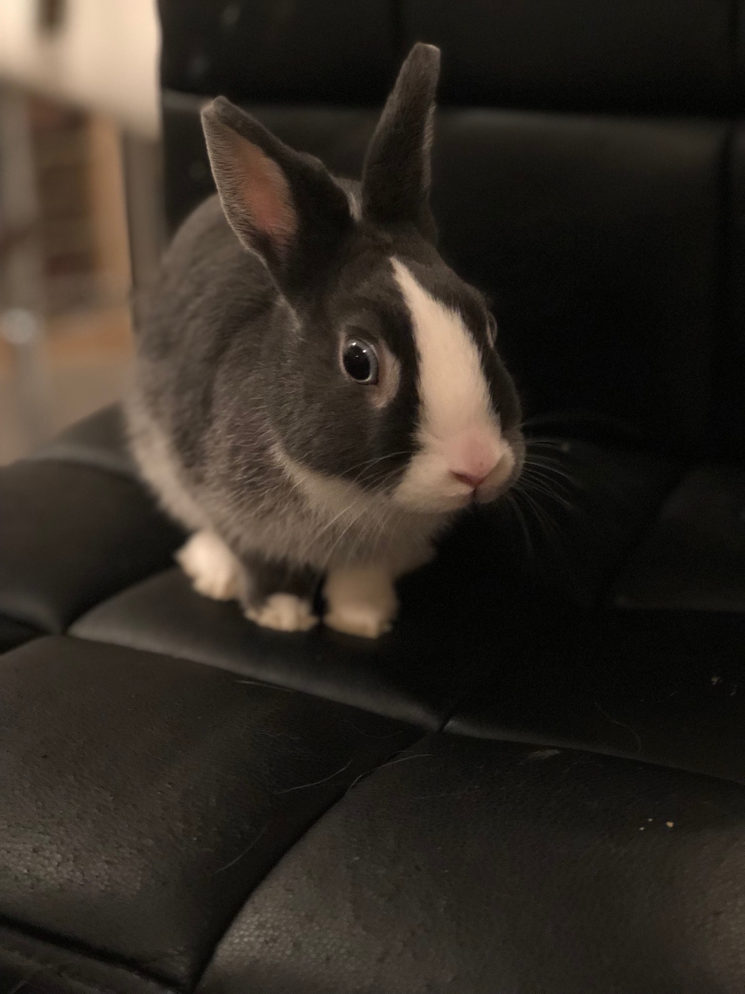 For a bun who doesn’t like being held for extended periods of time, he is more than happy to sit next to you and lap up the head scatches. If Moon really likes you, he will jump up onto your lap for a quick cuddle before hopping away.