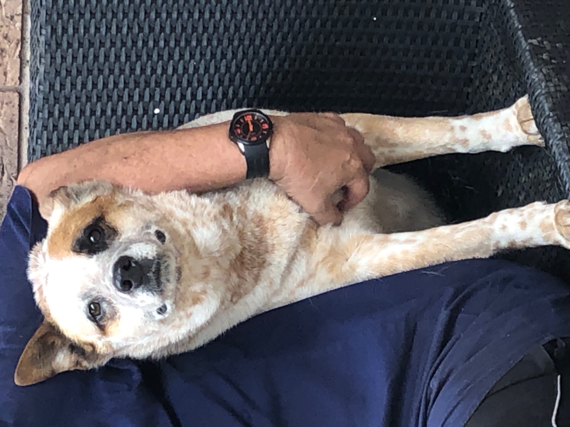 Due to her plumpness she’s not a fence jumper nor is she your typical energetic Red Heeler. She’s low maintenance energy-wise, so she may suit a small yard as long as she has a safe, quiet place to retire to when you have visitors.