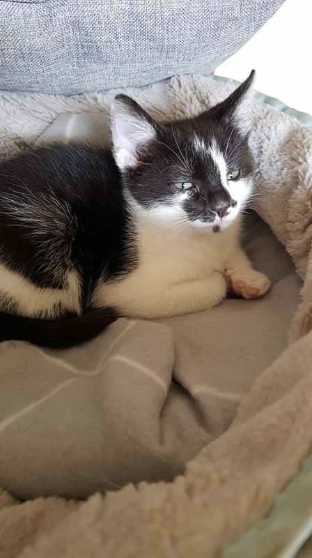 Snap and her siblings came to us as 5 week old strays. We believe that they'd had no human contact before coming into our care. They have come a long way and are now becoming more comfortable around people but are still wary. Lots of love in their new homes will help them develop trust and they can begin to realise they are safe.