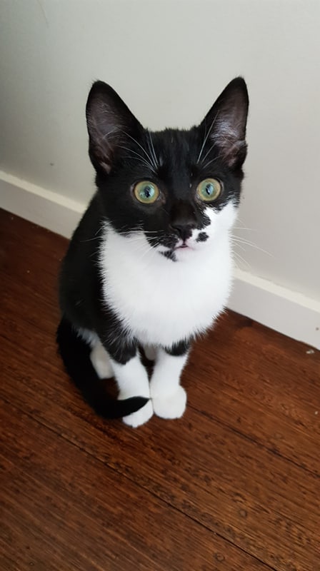 This sweet girl is the smallest of her litter and has the loudest purr! She is often found with her sister, Snap & her adorable 'adoptive mumma' Bree.