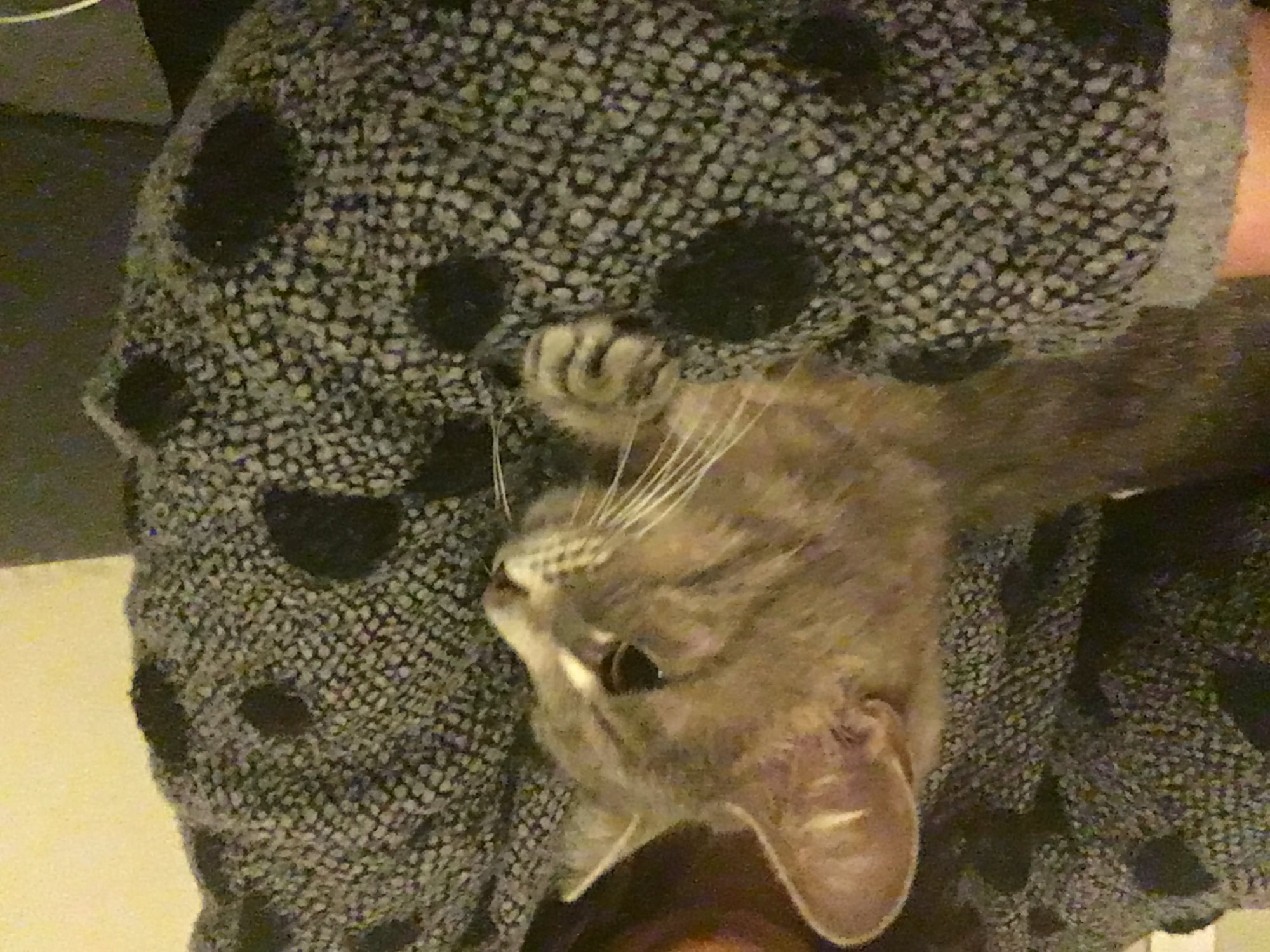 Augustine is small but confident. She will find a spot in your house no matter how chaotic things are. She isn't scared of loud things, small children, or big cats as she is a total queen. Being a queen means she spends a fair bit of time keeping her gorgeous gray coat at its best shape as there is no such thing as being overdressed or over educated.