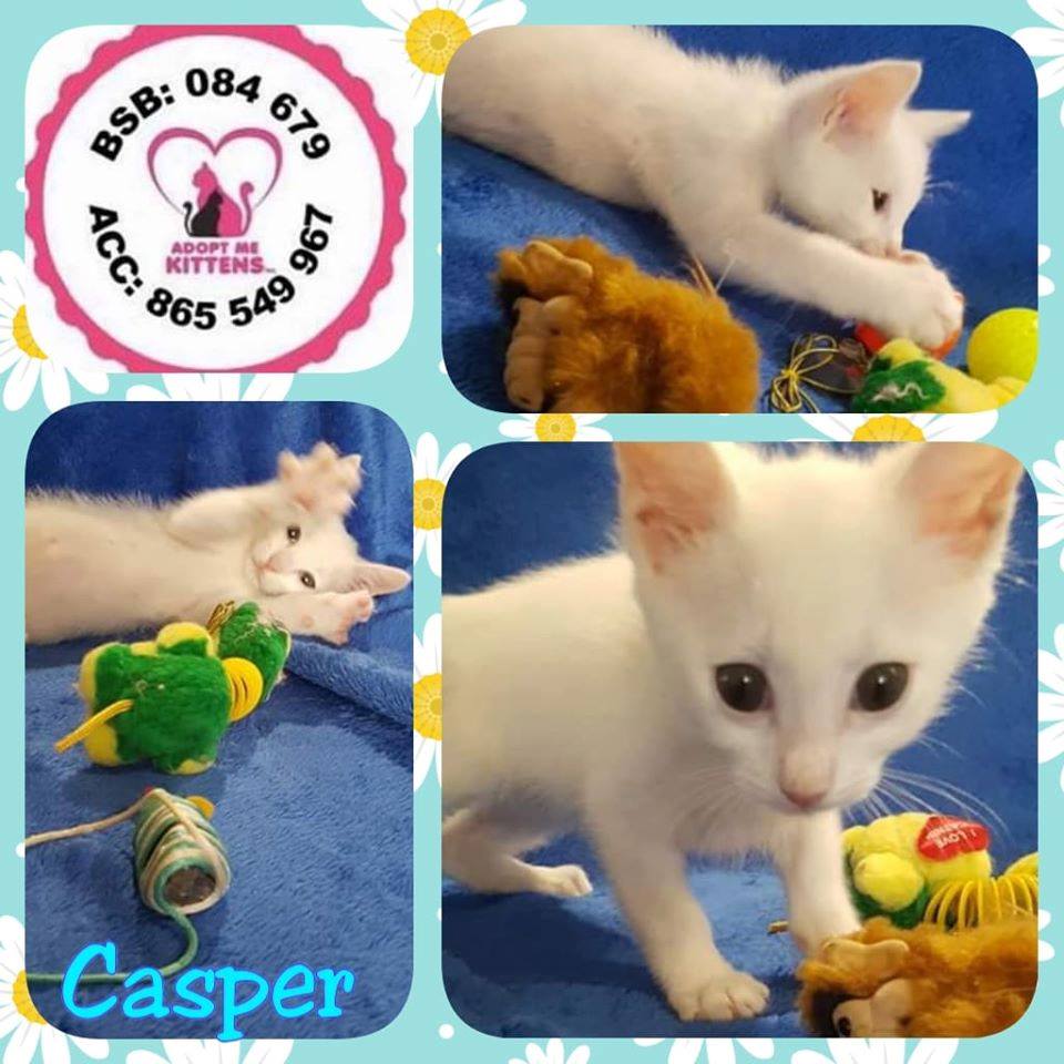 NOTE: Casper is DEAF as such he needs to go to a home where there is another cat or be adopted with a mate. He must be an indoor cat .